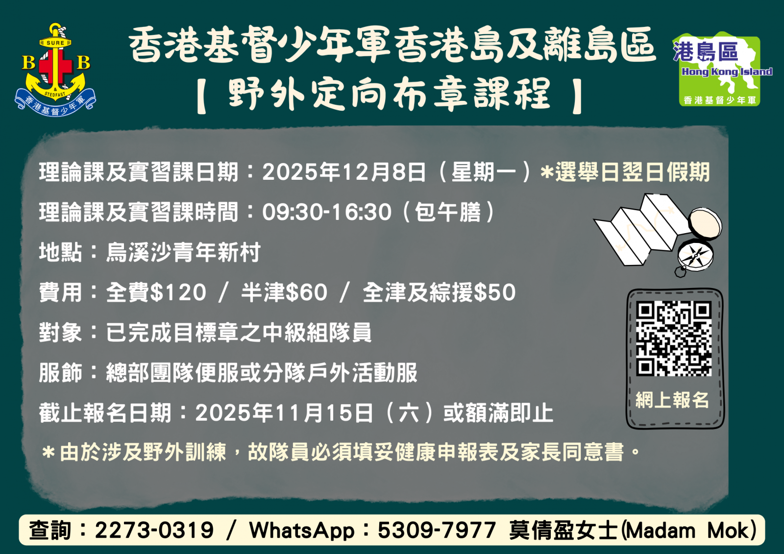 香港島及離島區《野外定向布章課程》 (更新日期:09-10-2025)