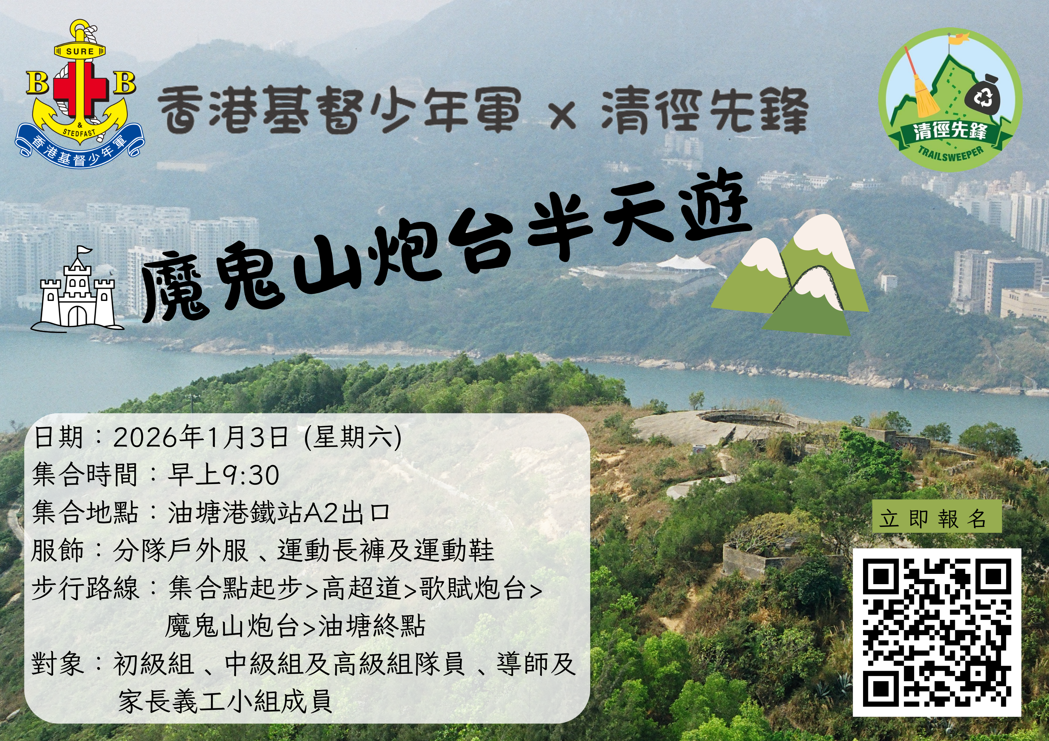 簡介: 今年再次夥拍「清徑先鋒」於2026年1月3日 (星期六) 舉行清徑活動。目的是將「清徑」理念,進一步推廣到社會的不同角落,期盼有更多不同的人和組織,能嚮應我們的義務工作,一起攜手,共同使香港的自然郊野,變得更清新怡人!