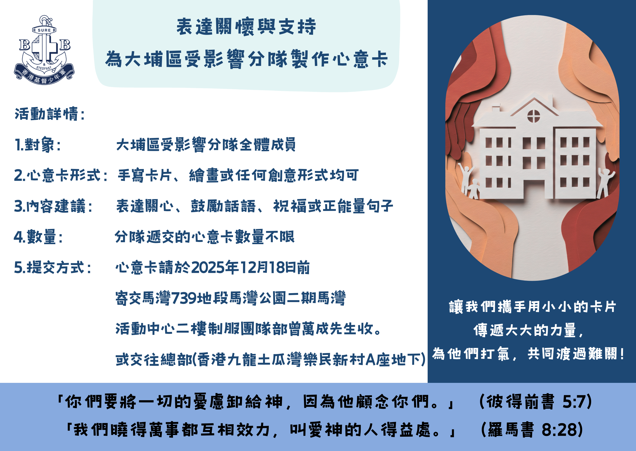 的卡片,為他們送上溫暖的祝福與鼓勵。亦邀請各分隊繼續為此事件懇切祈禱!🙏🏼