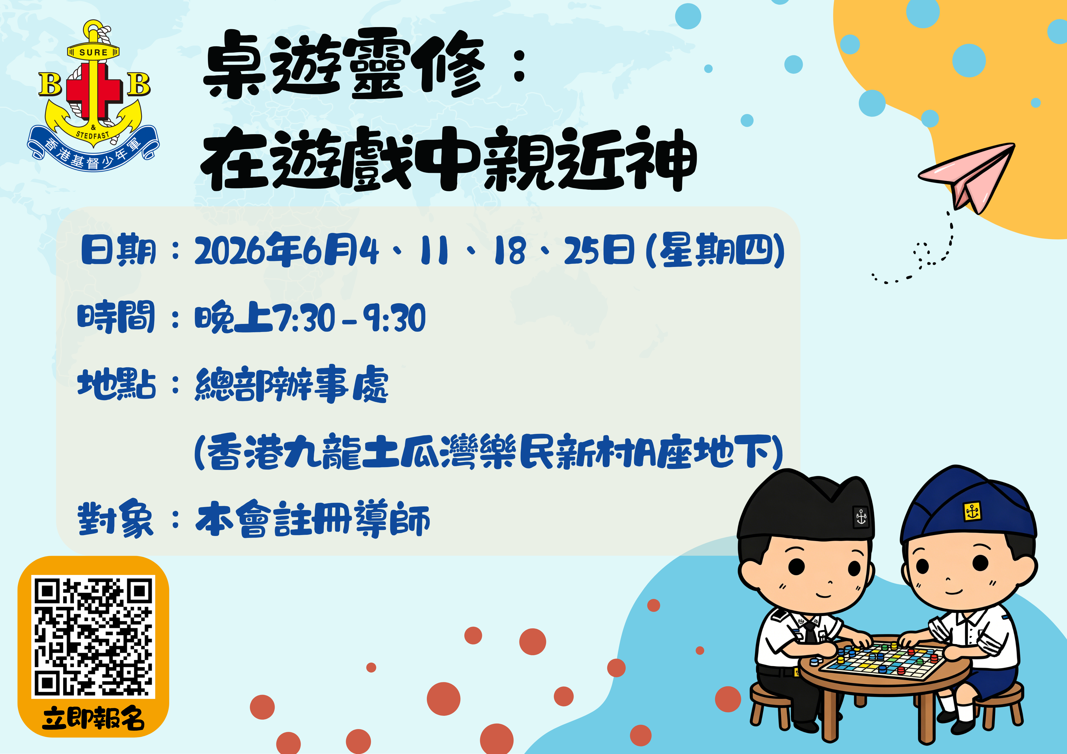 查詢:制服團隊部事工幹事譚詠琪女士(KIKI) (TEL)2714-9253/(WHATSAPP) 9384-5071