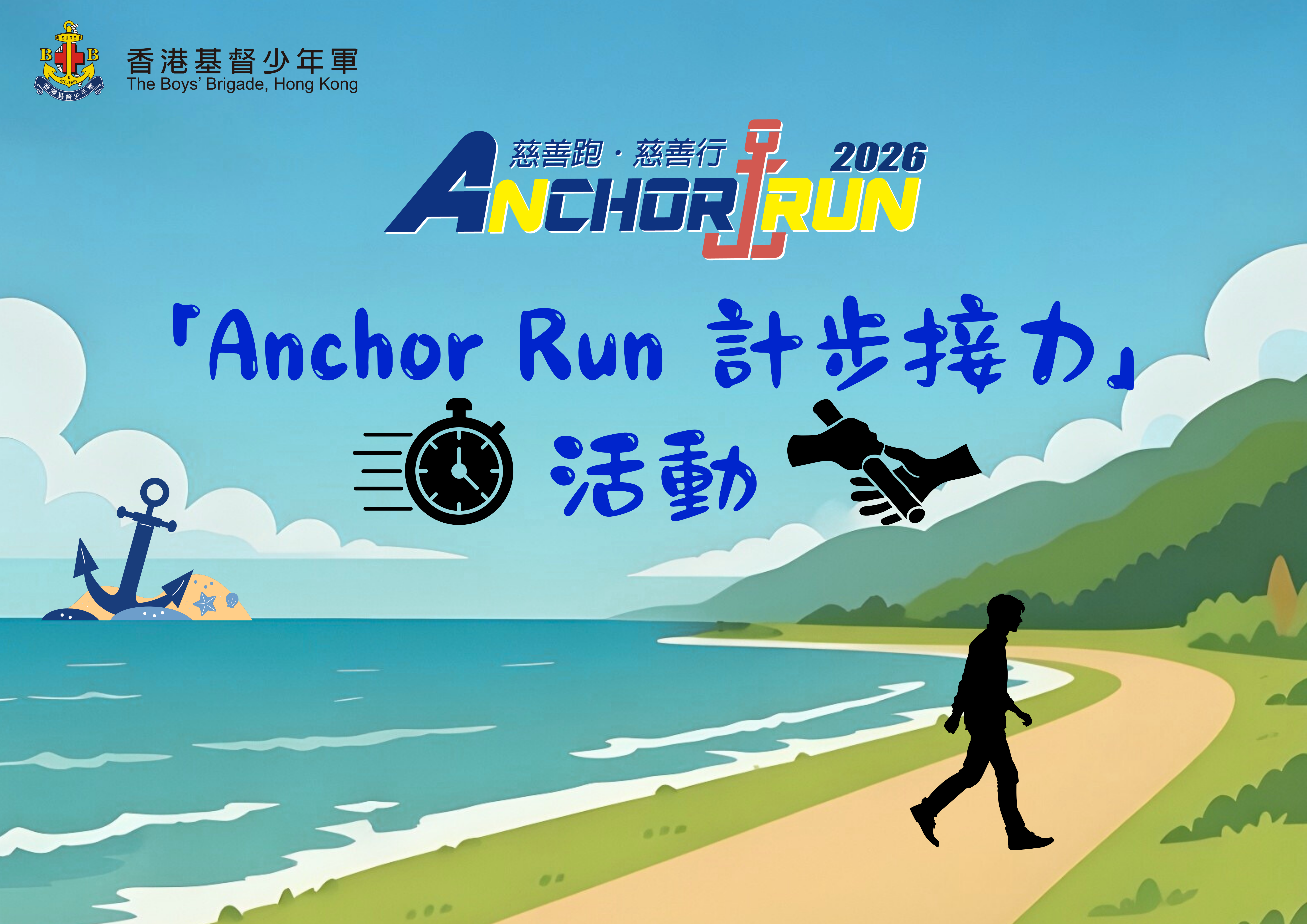 Anchor Run 慈善跑.慈善行是香港基督少年軍舉辦的運動籌款盛事,期望藉活動鼓勵社會各界與兒童及青少年同跑同行,並呼籲社會關心他們的成長需要,為下一代奔跑出更美好將來 ; 亦期望讓參加者透過與家人和朋友一同面對挑戰的過程、明白同行互勉的重要性。