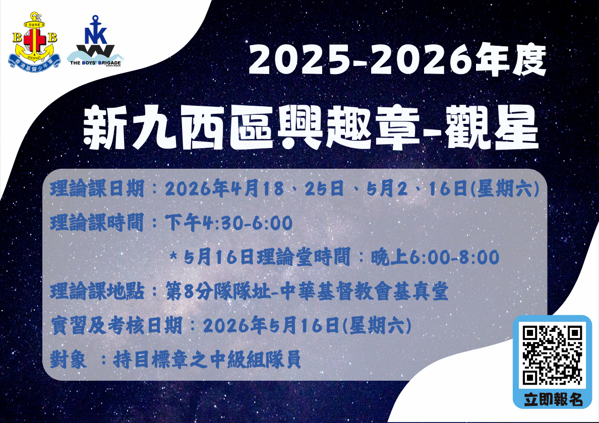 日期: 2026年1月24- 25日 (星期六至日) 時間及地點:理論課堂內公佈 服飾:分隊戶外活動服 |