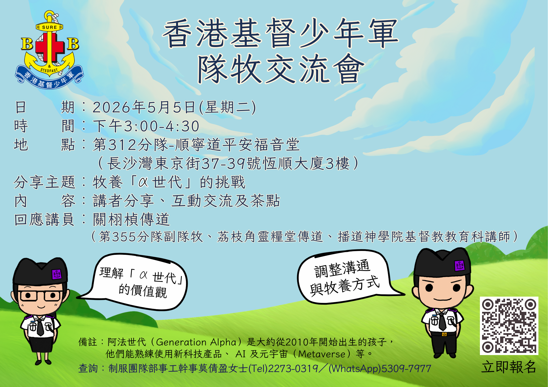 ☎️查詢︰制服團隊部事工幹事莫倩盈女士(Tel)2714-9253/(WhatsApp)5309-7977