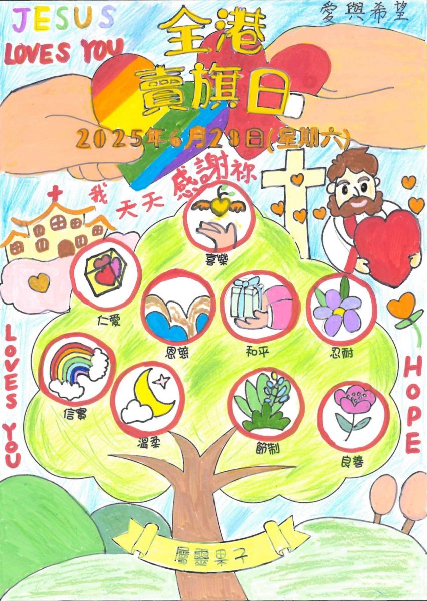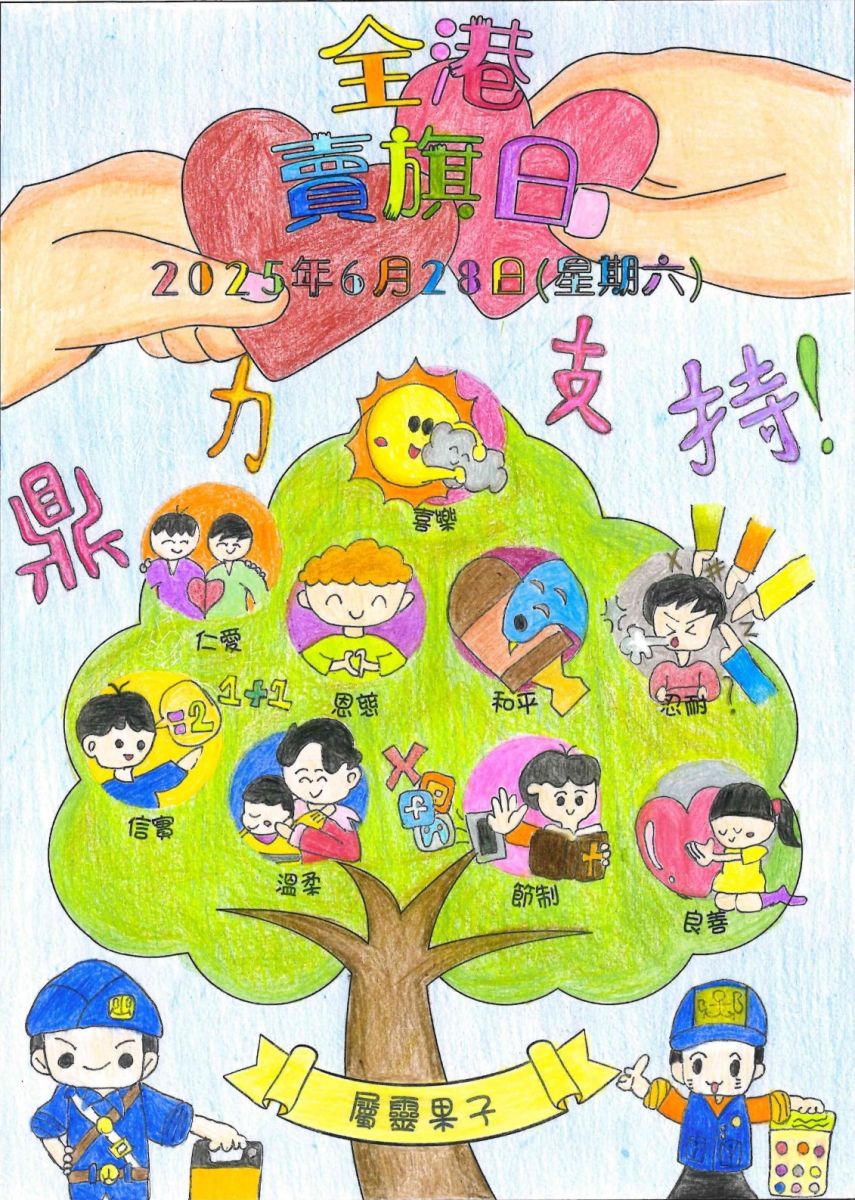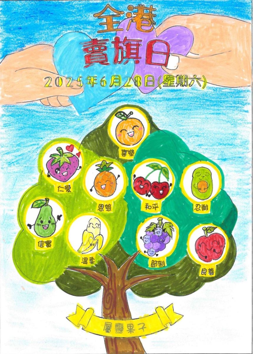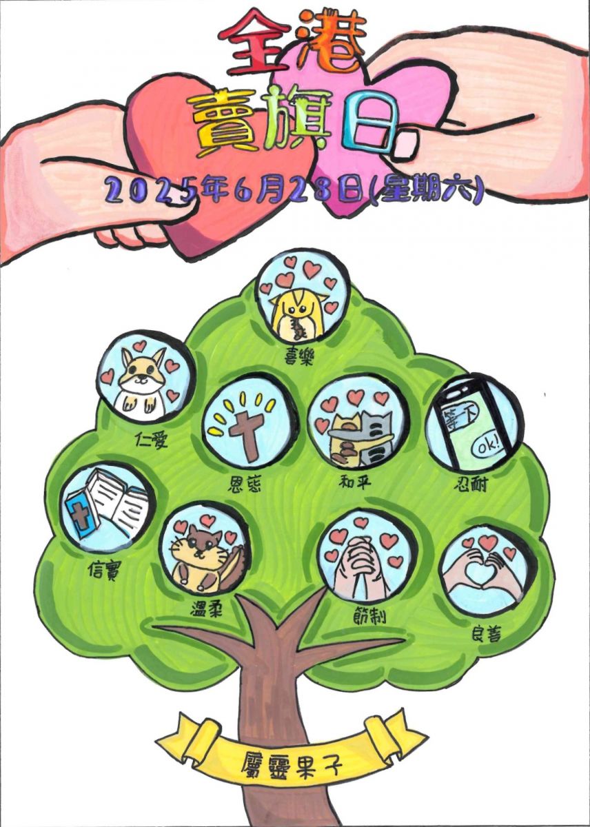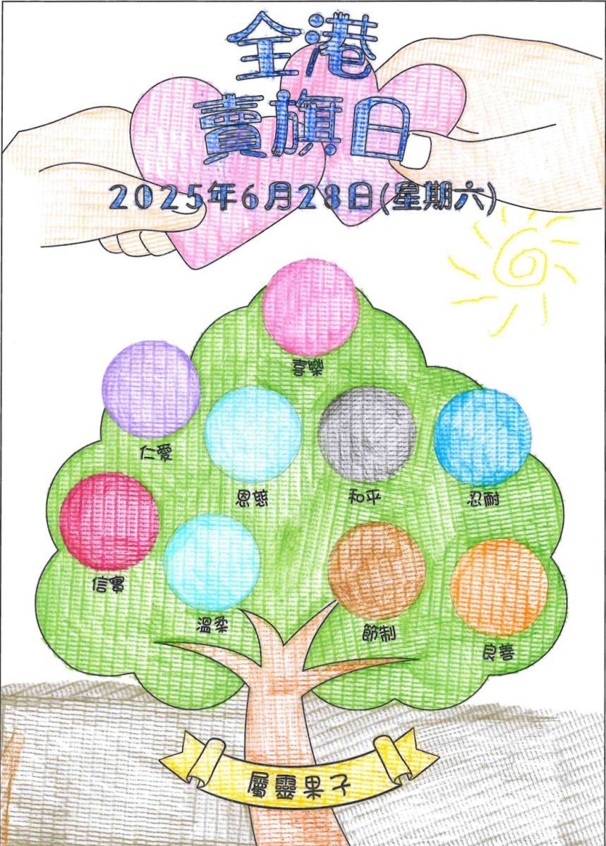 在此恭賀各得獎隊員,冠軍參賽作品將被印製成「賣旗義工紀念文件套」,於2025年6月28日在全港賣旗日當天作為賣旗義工紀念品隨機送出,另外亦會全套(各組別冠軍作品)作為線上金旗紀念品送出。